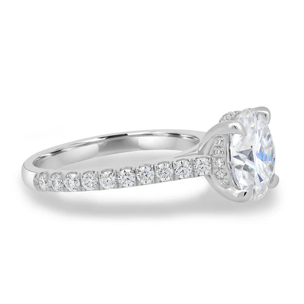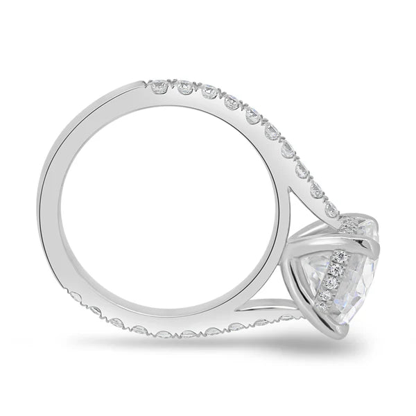 Cathedral 4 Claw Pavé Round Solitaire with Hidden Halo