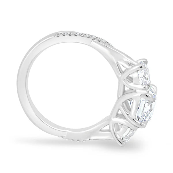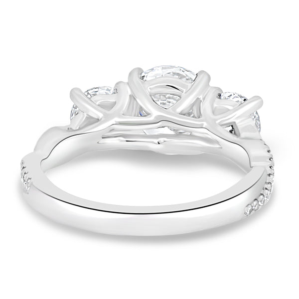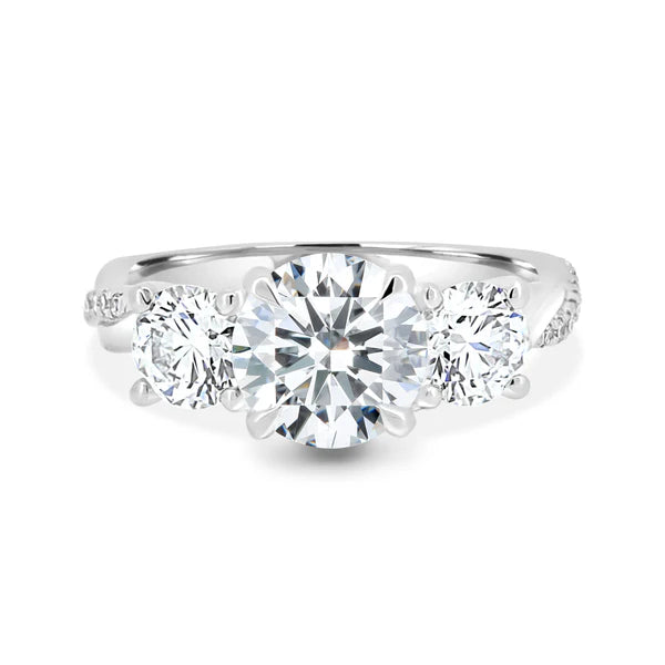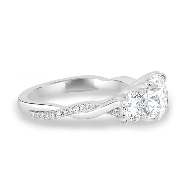 Our breathtaking round stone trilogy with an intricate twisted band.